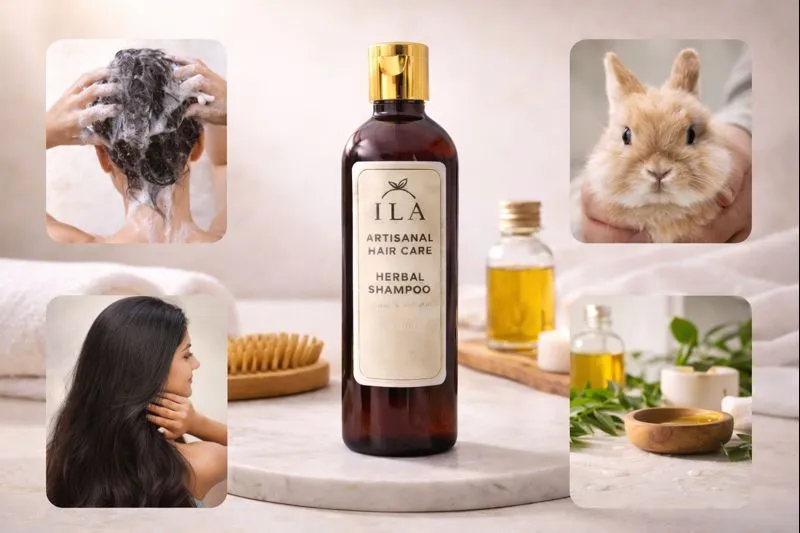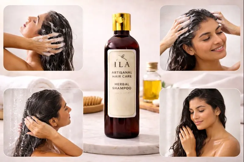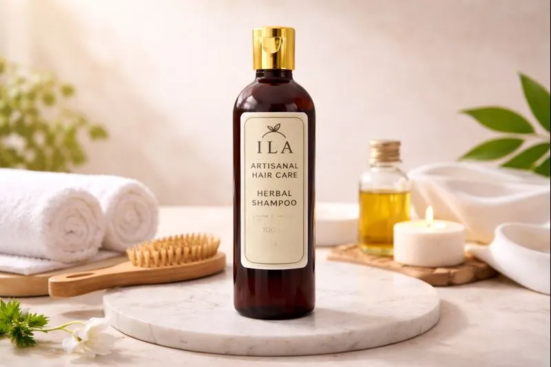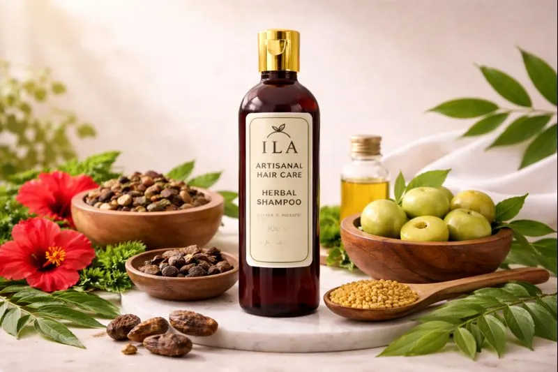 ILA Herbal Shampoo is enriched with traditional botanicals such as Reetha, Shikakai, Amla, Fenugreek, Hibiscus, Neem, and Curry Leaf. These time-tested herbs cleanse effectively without stripping the hair of its natural oils.